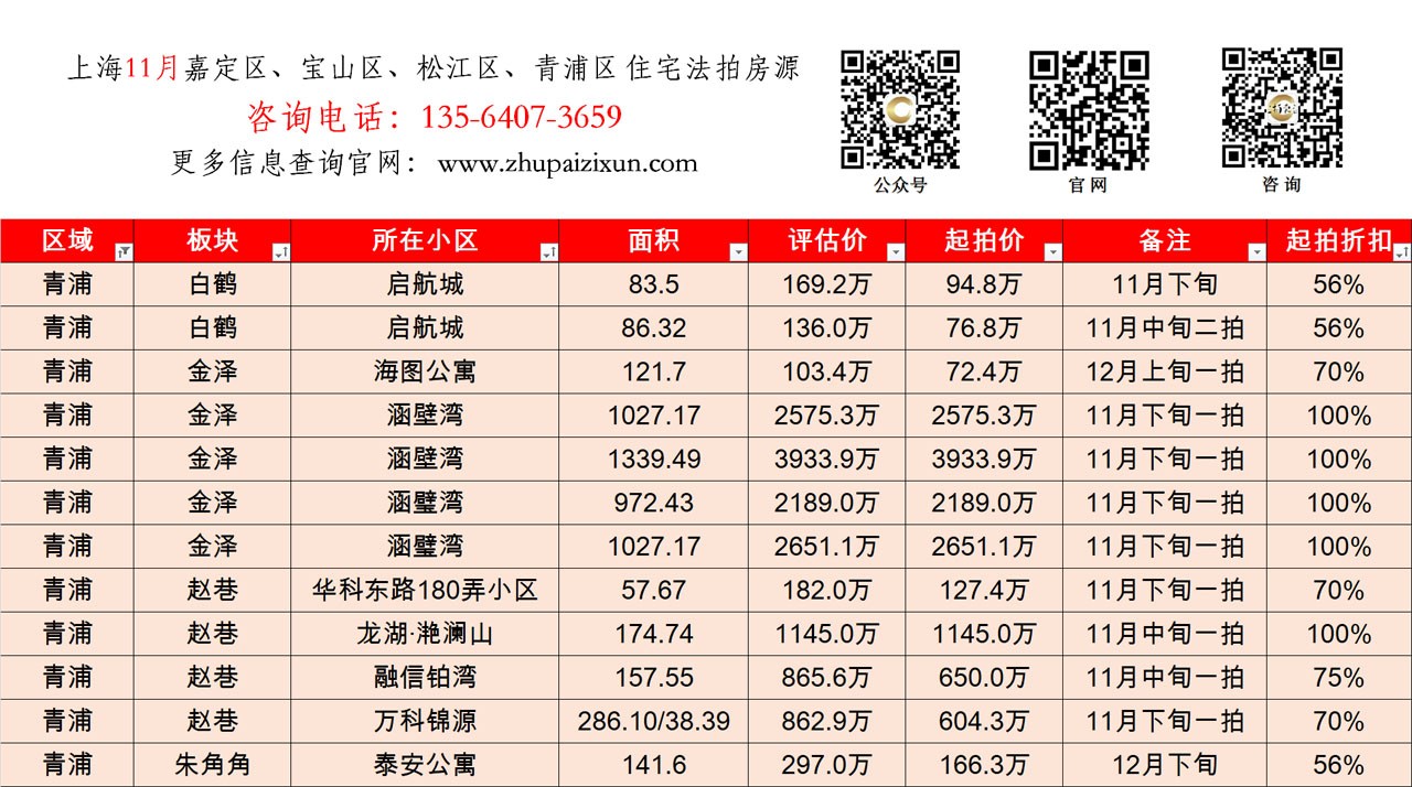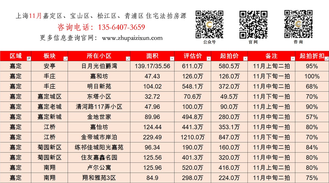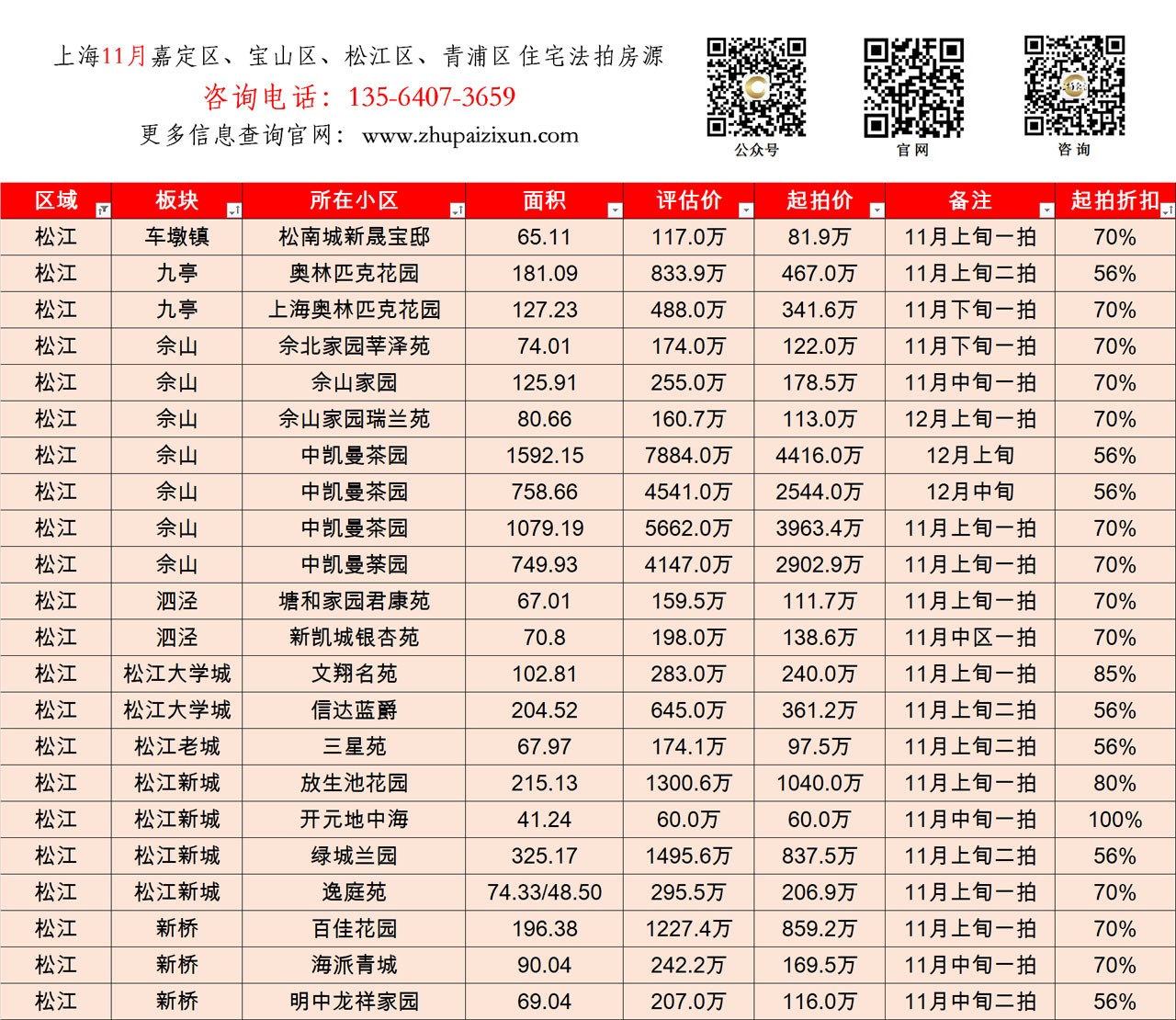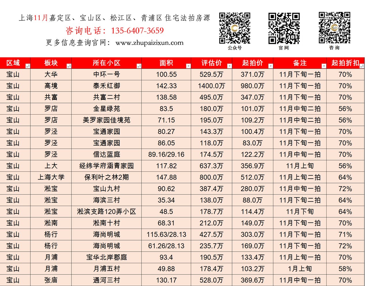 上海市 2025年11月 法拍房 上市房源 (嘉定、宝山、松江、青浦)