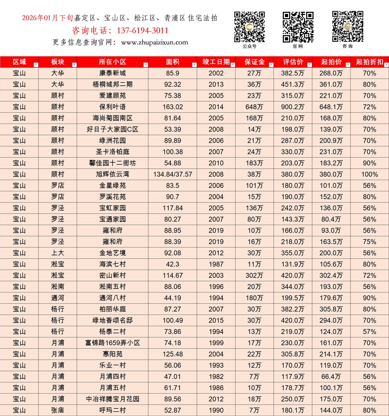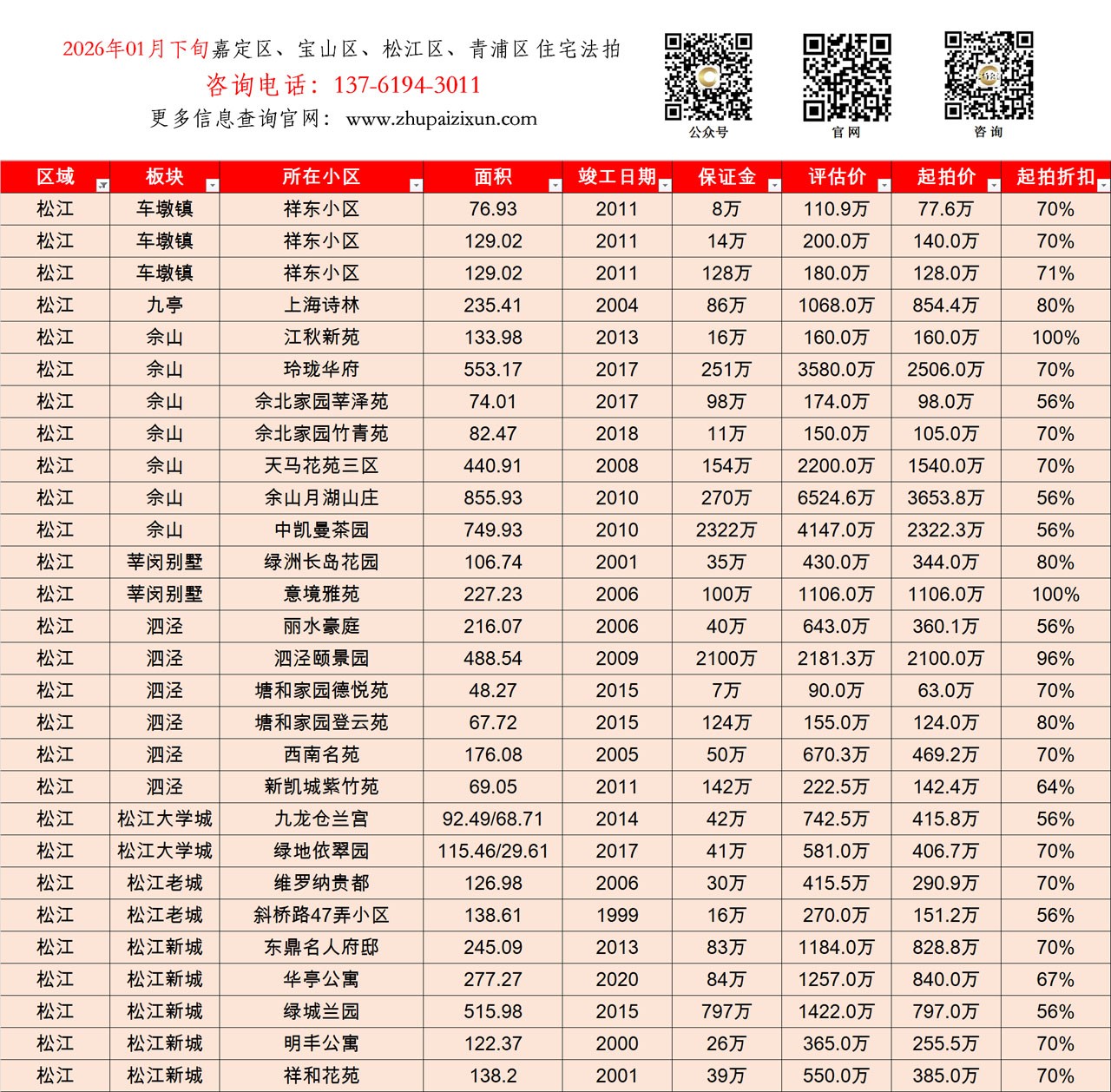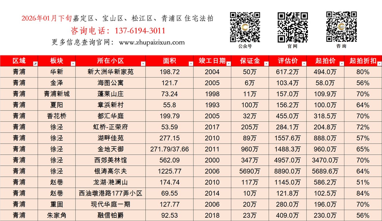 上海市 2026年01月下旬 法拍房 上市房源 (嘉定、宝山、松江、青浦)