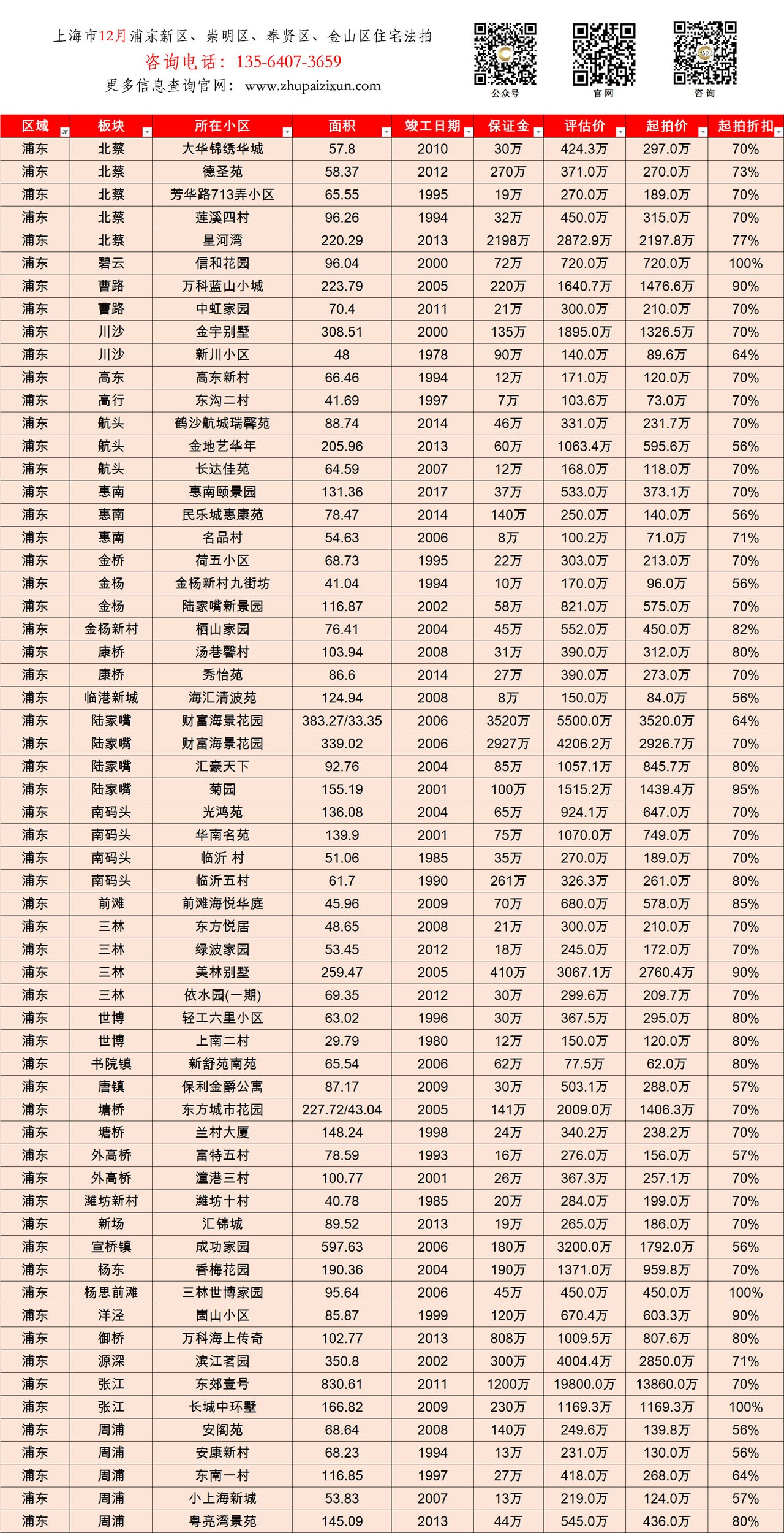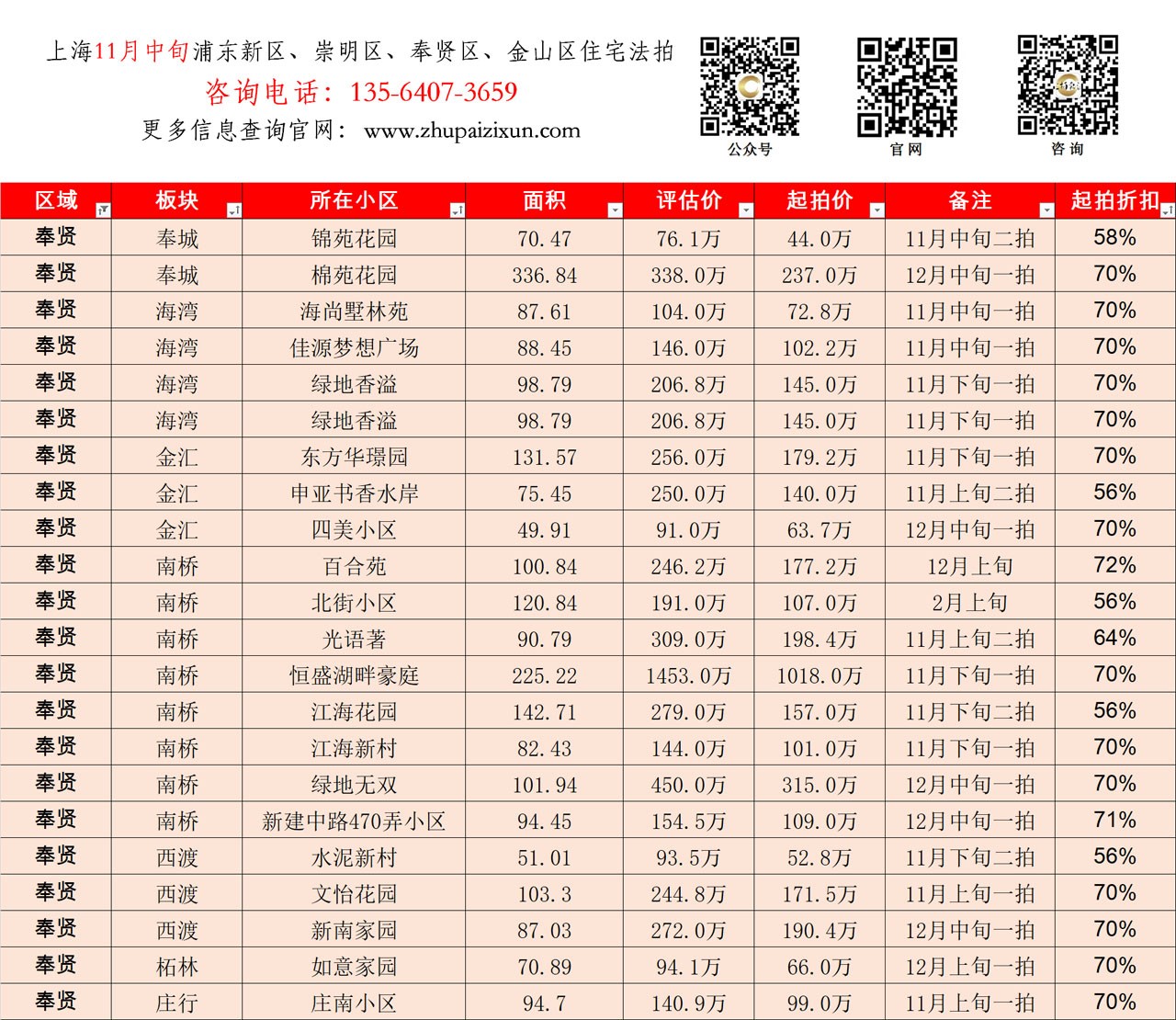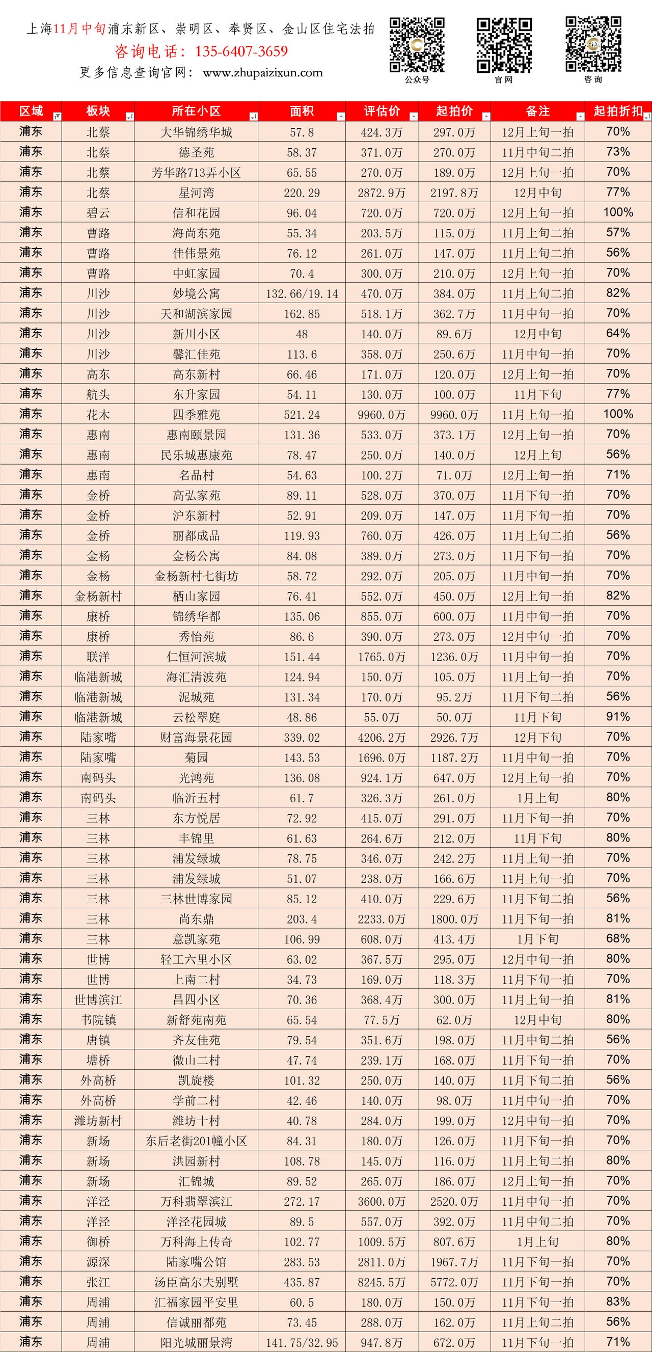 上海市 2025年11月中旬 法拍房 上市房源(浦东新区、崇明、奉贤、金山)