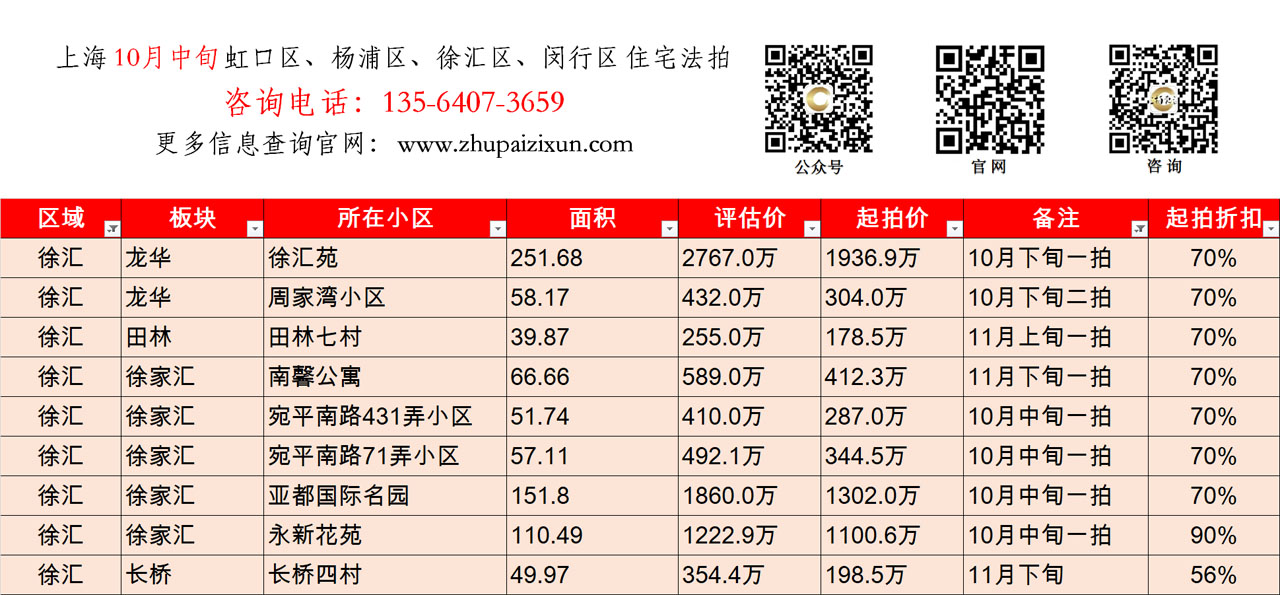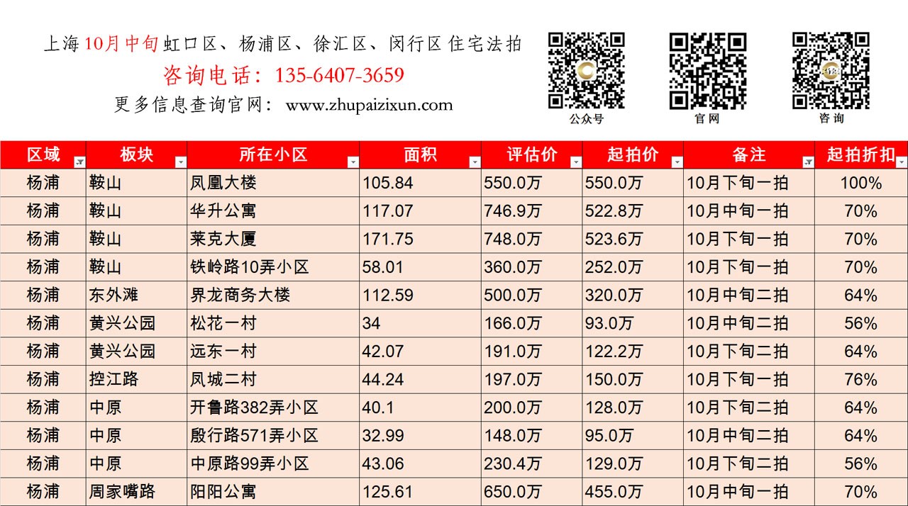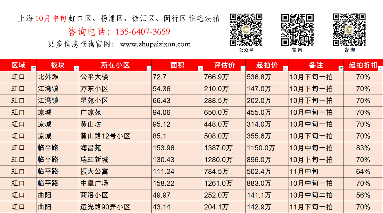 10.09 上海市 2025年十月中旬 法拍房 上市房源(徐汇、闵行、虹口、杨浦)