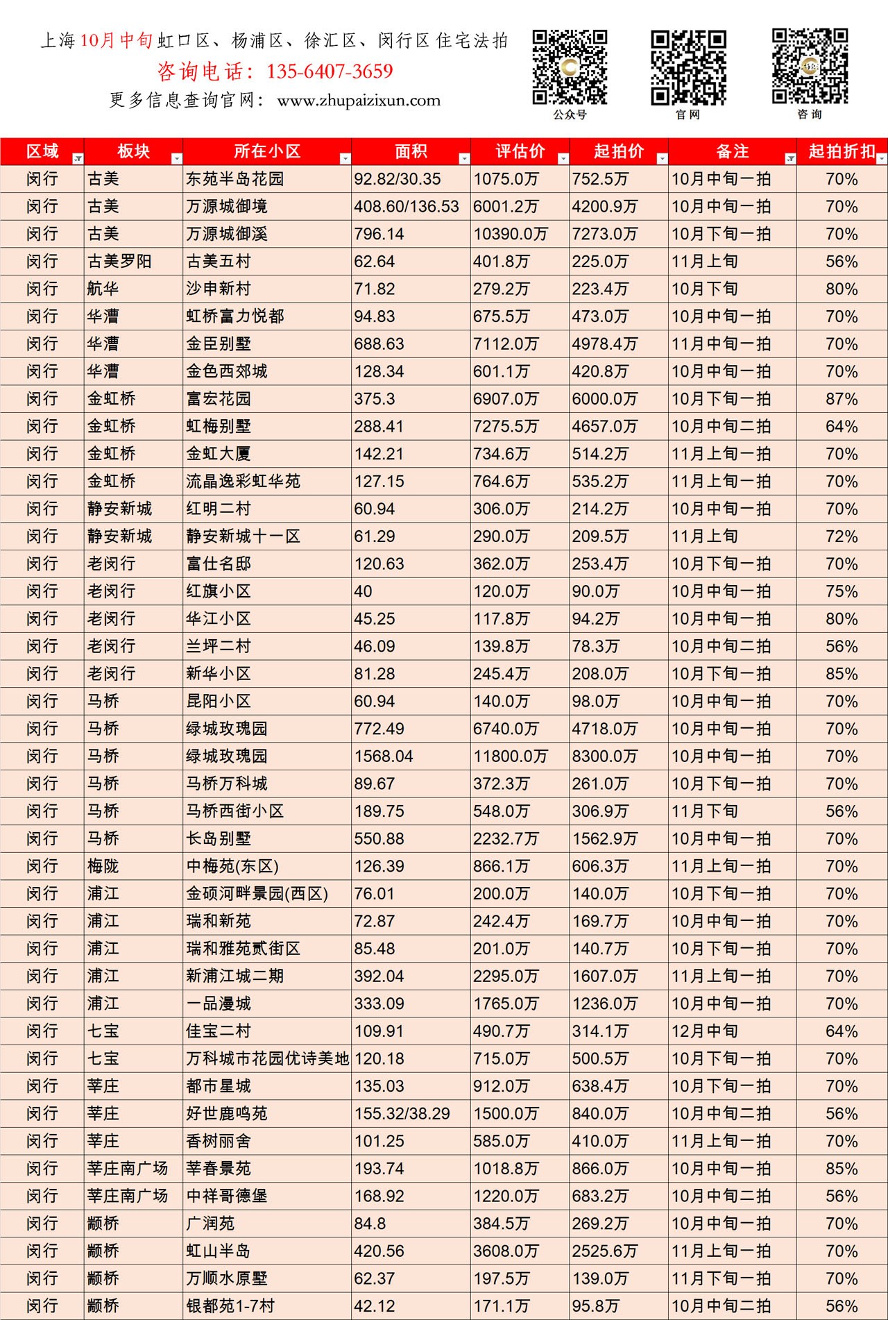 10.09 上海市 2025年十月中旬 法拍房 上市房源(长