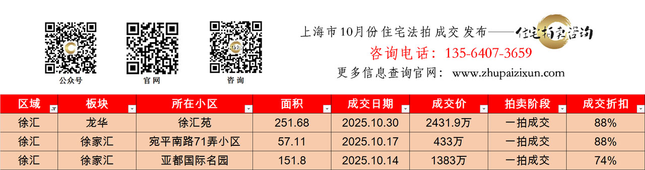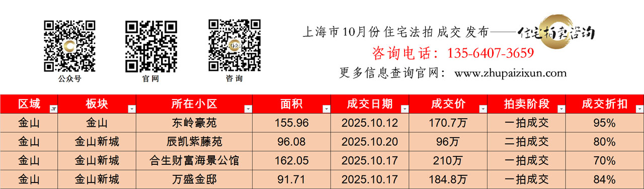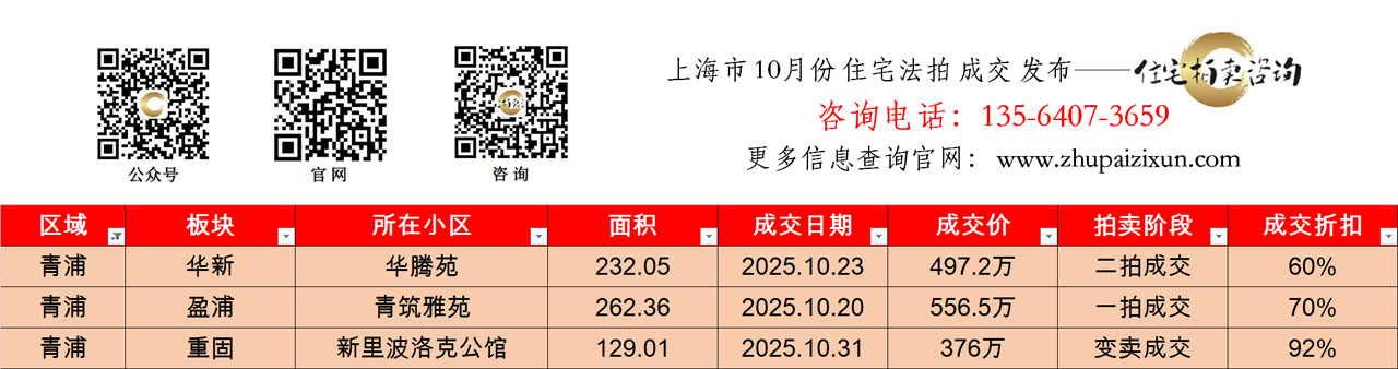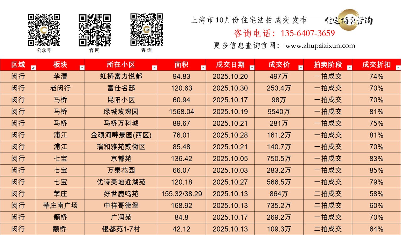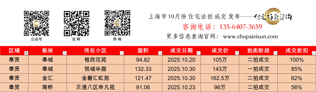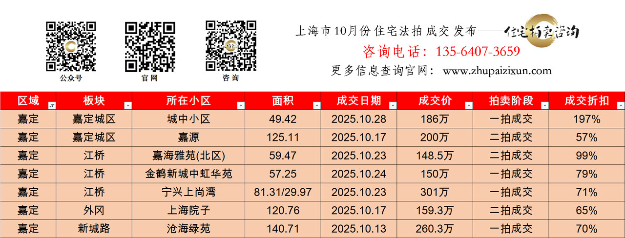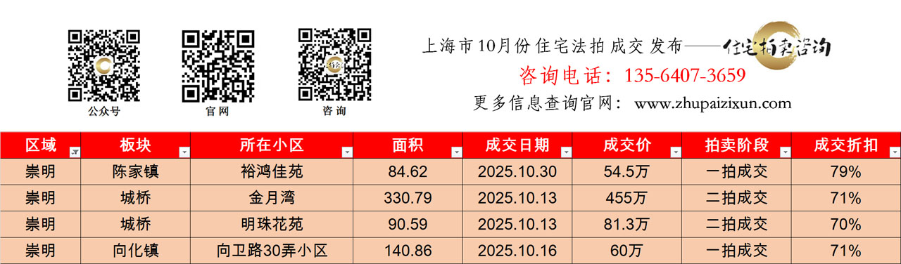 上海市 2025年十月 住宅法拍成交房源