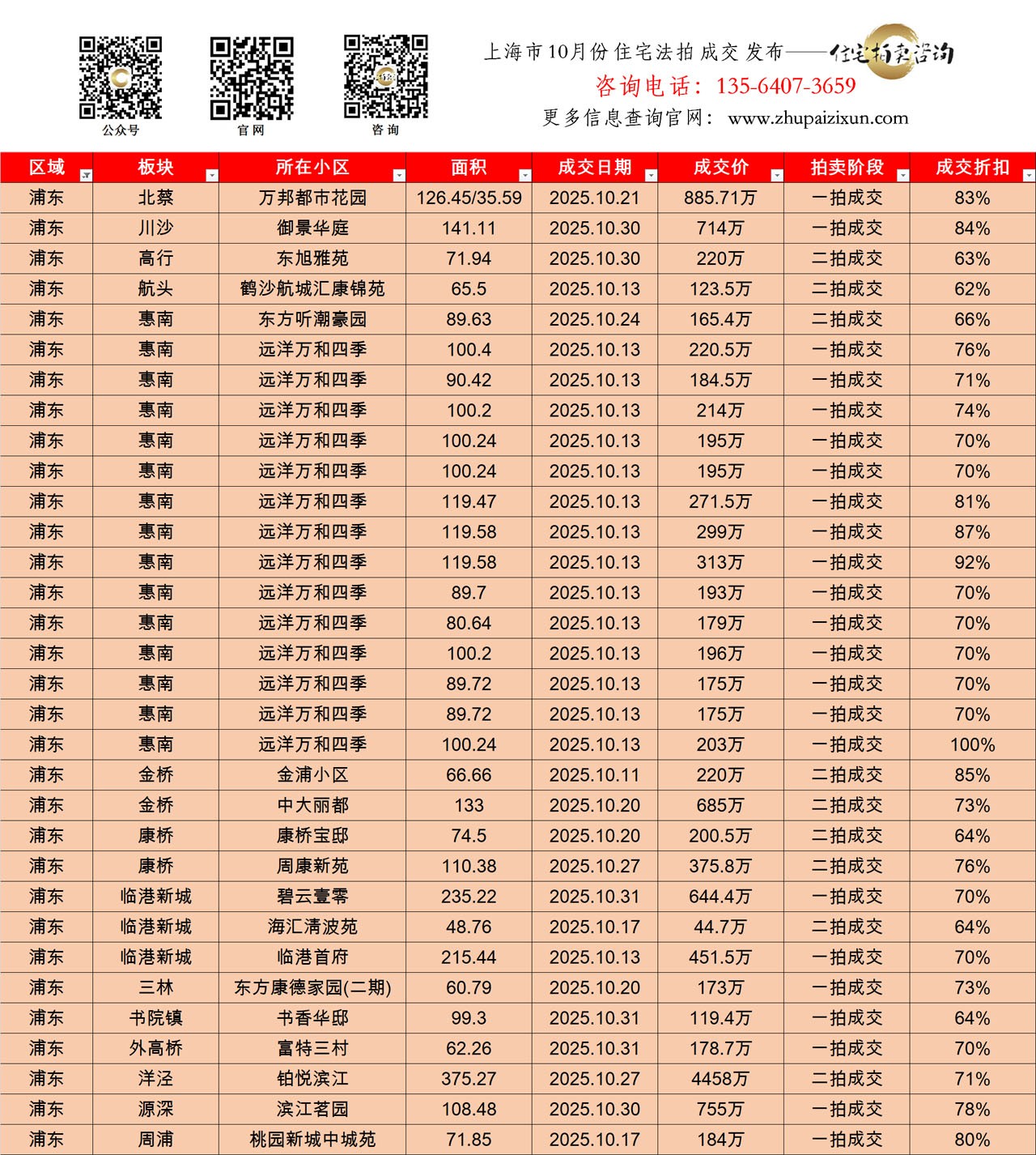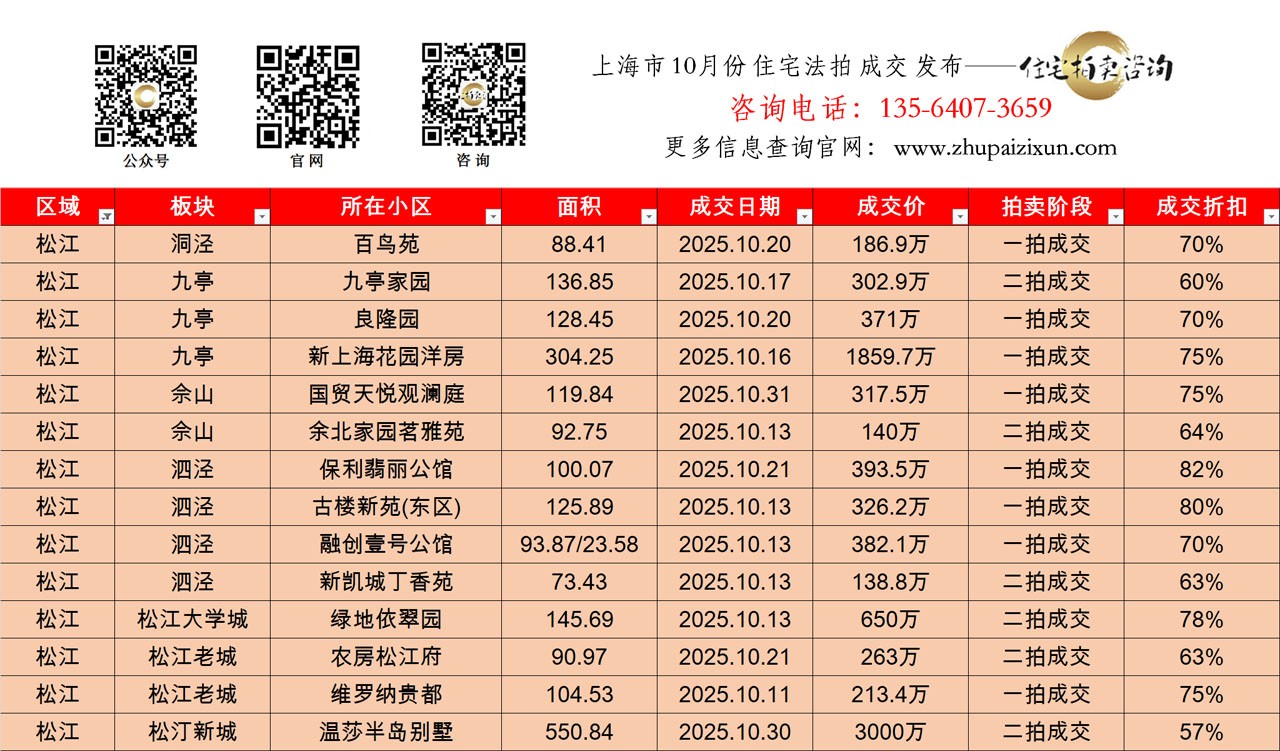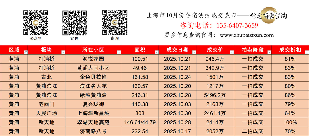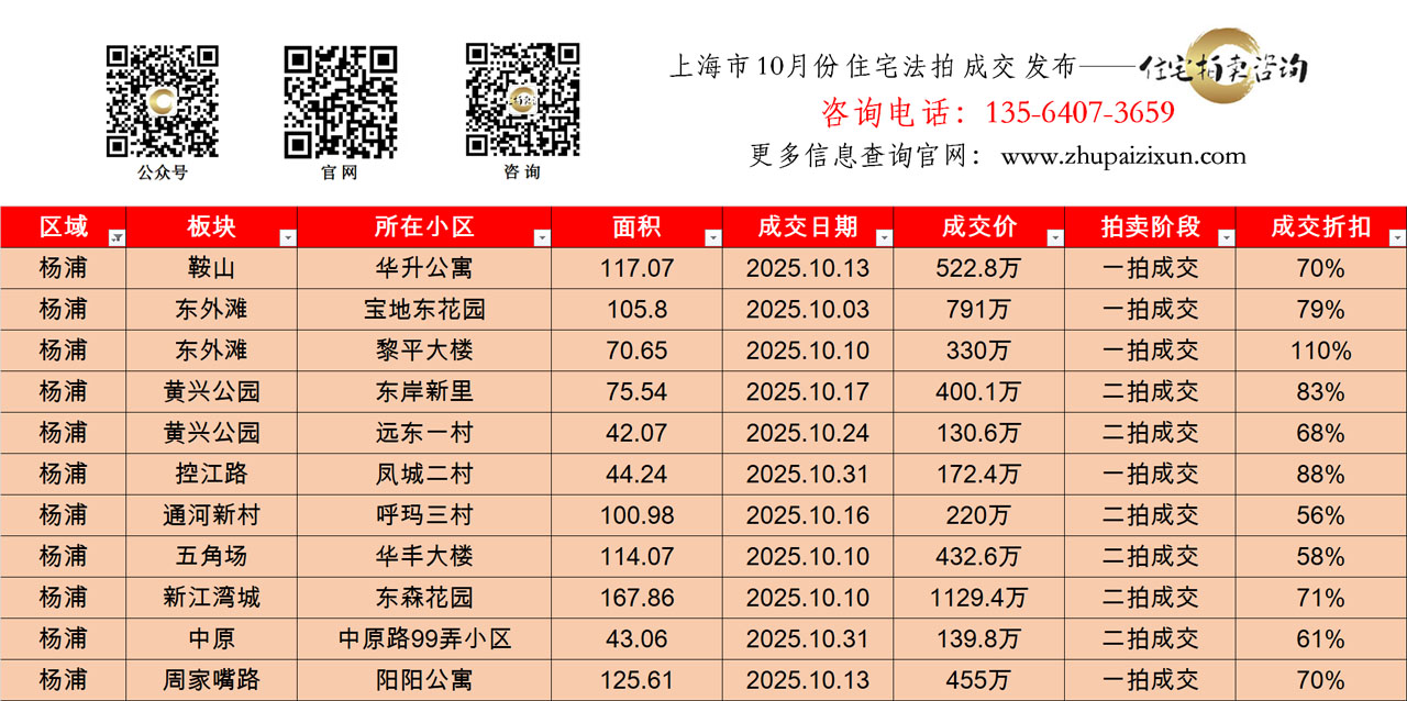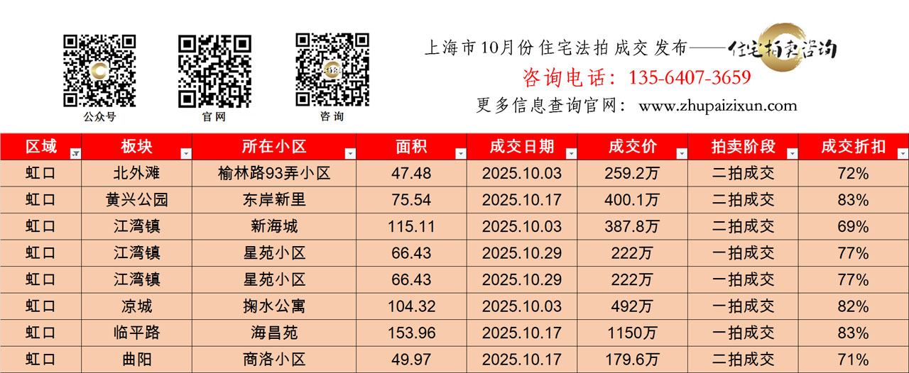 上海市 2025年十月 住宅法拍成交房源