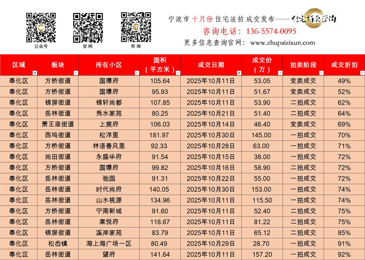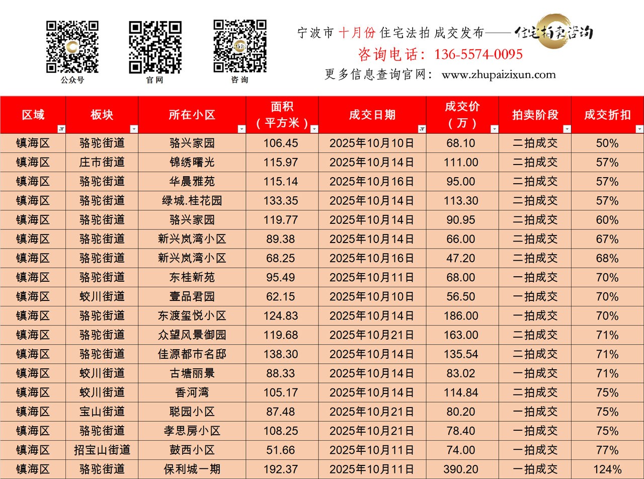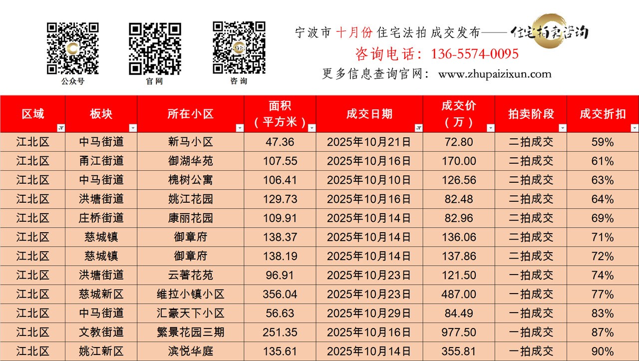 宁波市 2025年11月上旬 住宅法拍 成交房源