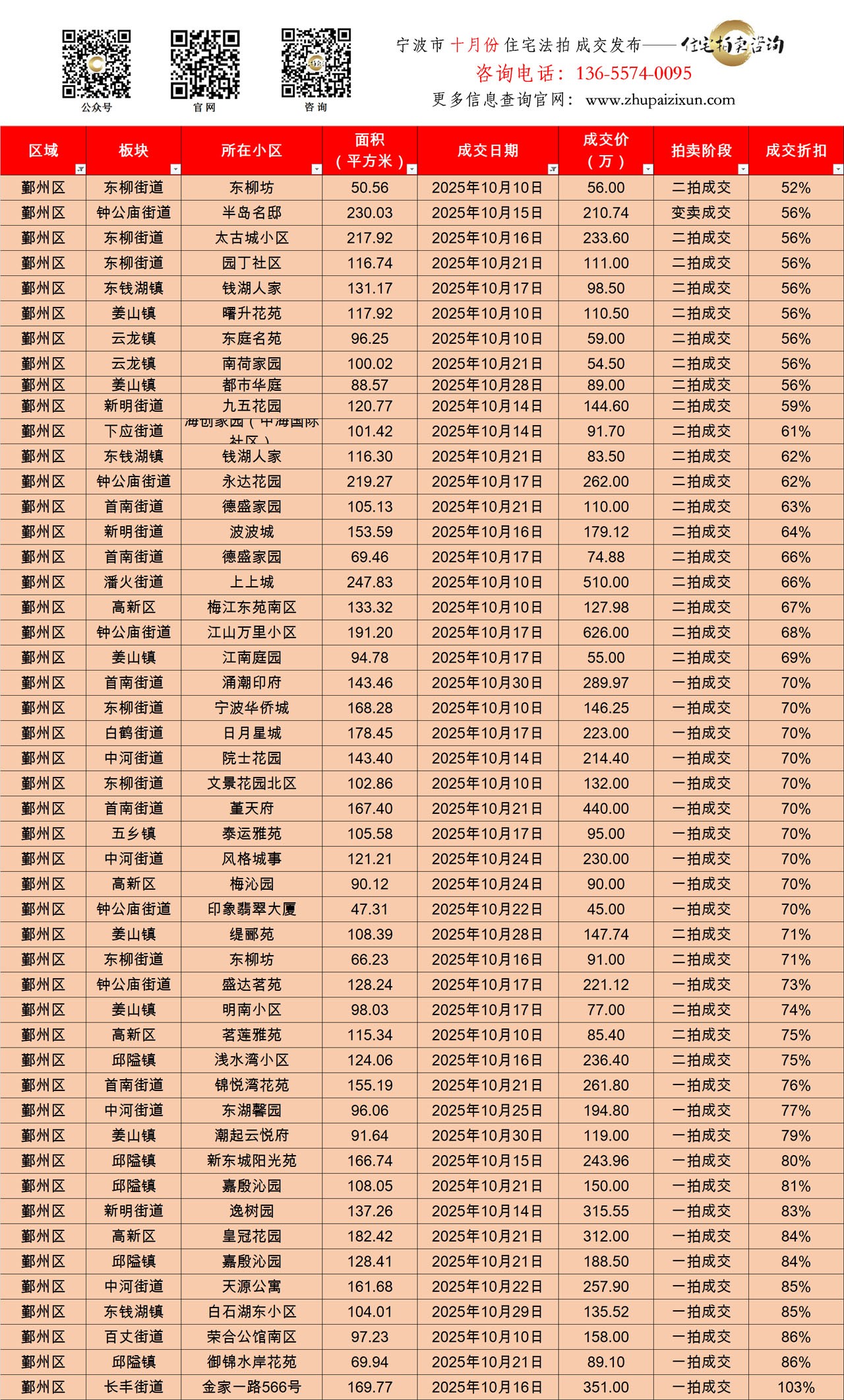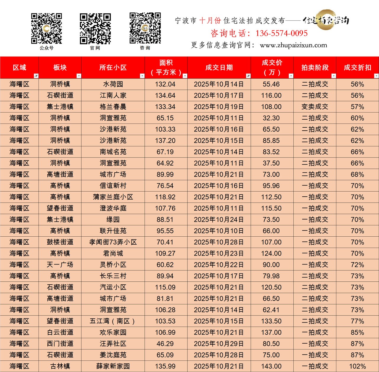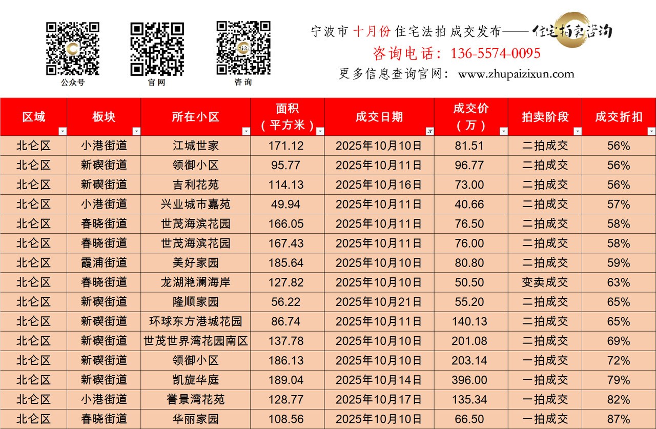 宁波市 2025年11月上旬 住宅法拍 成交房源